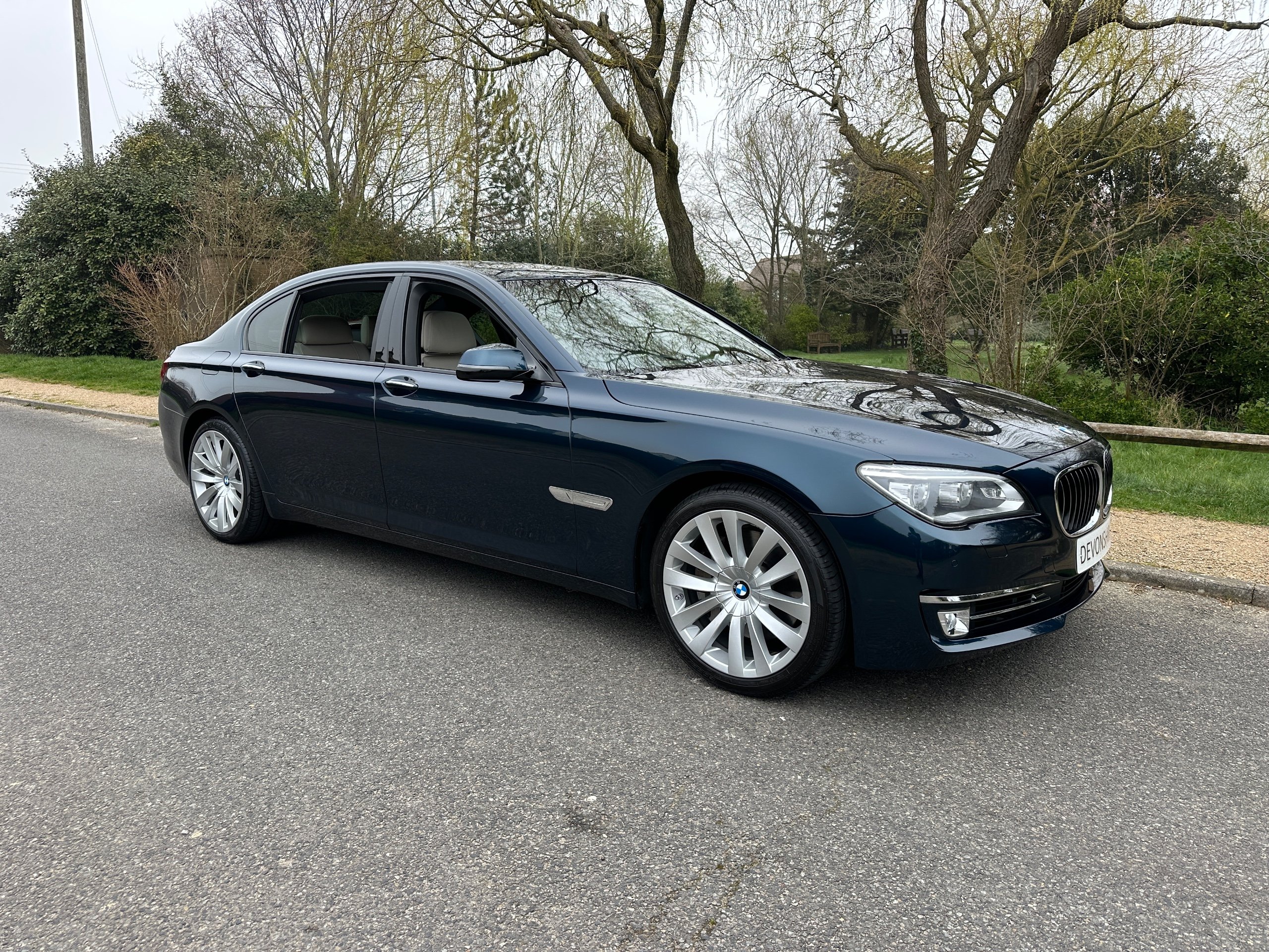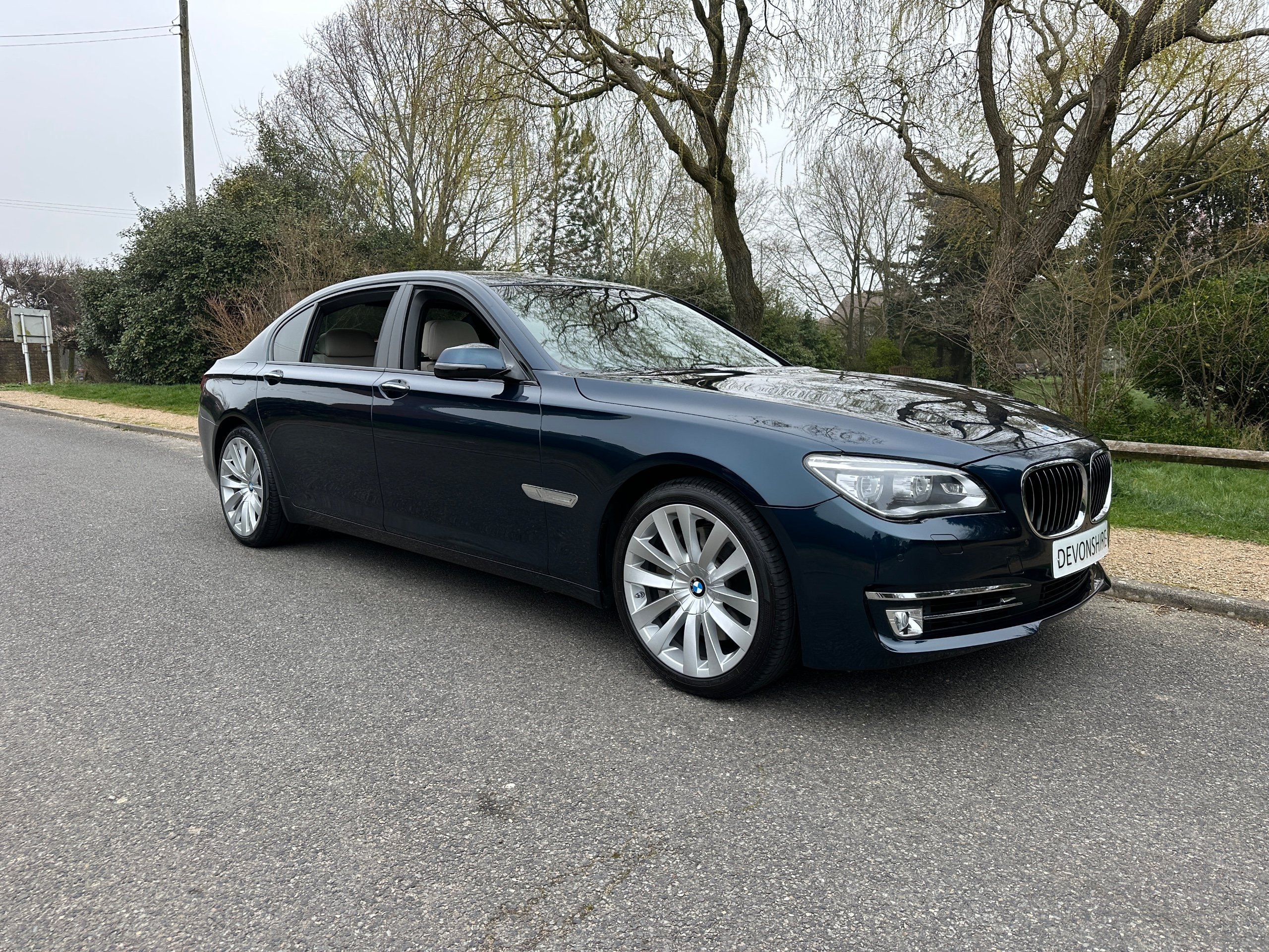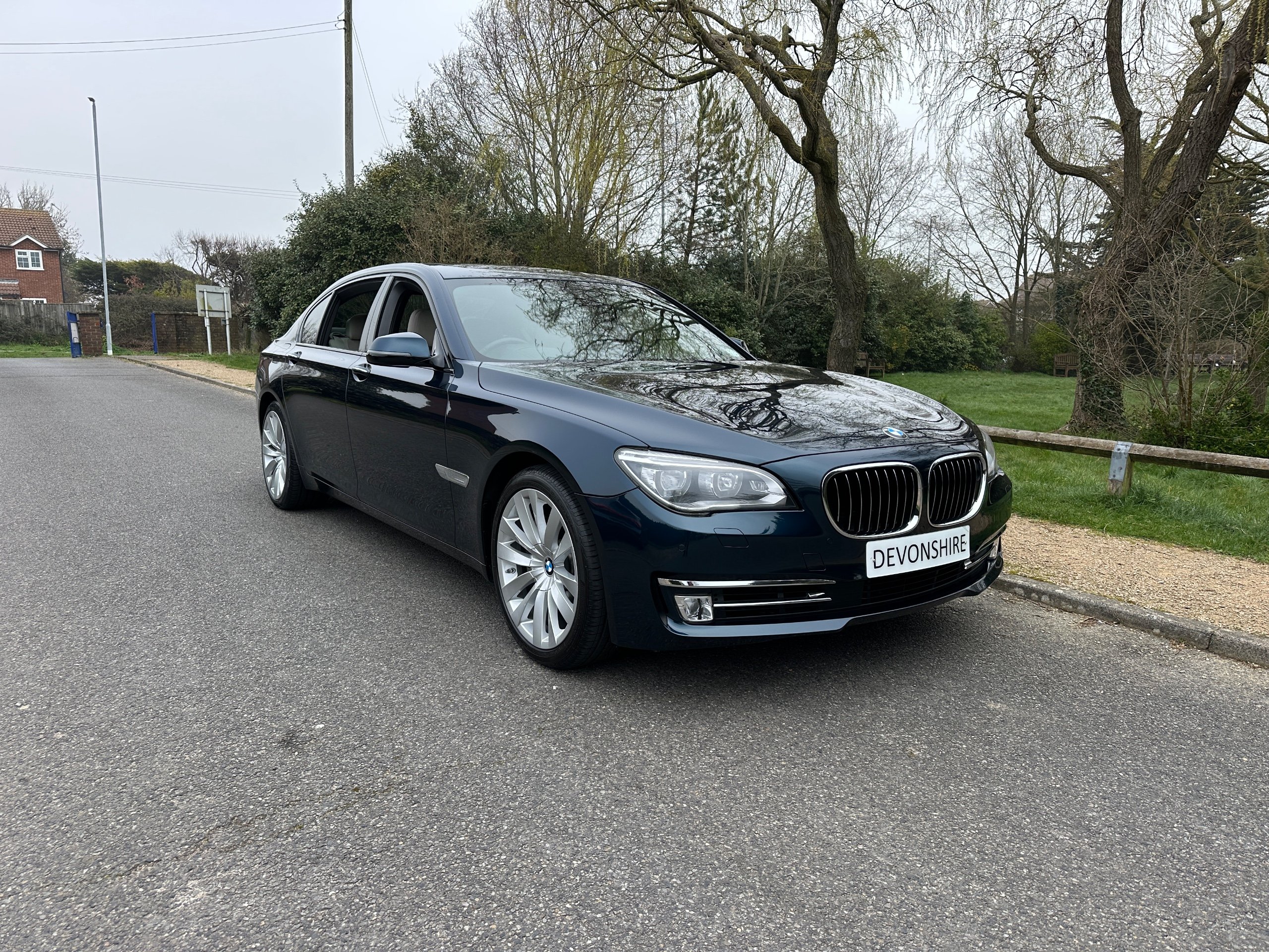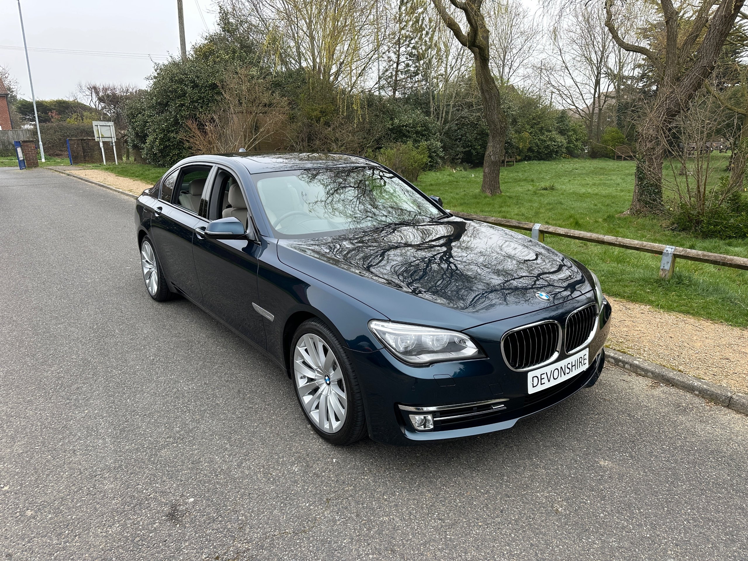 BMW 750Li SE 4.4 V8 Twin Turbo Petrol Automatic. ONLY 12500 MILES FROM NEW. 2014 UK Supplied From New. Finished in Metallic Midnight Blue with Full White Ivory Dakota Leather Electric Heated Air/Con Seats. This Incredible Car was Sold New by BMW Park Lane to its One Owner in 2014. Factory Options Cost over £25k: Executive Plus Pack, Rear Seat Entertainment with 10"Screens, BMW Professional with Rear iDrive Control,Rear Electric Comfort Heated/AirCon Seats, Adaptive LED Headlights, Night Vision with Dynamic Light Spot, Driving Assistant Plus, Comfort Seats Front Heated/Air Con, Rear Picnic Tables, Head-up Display, Rear Camera, 20" Double Spoke alloys,Instrument Panel in Leather, Comfort Access System,Soft Close Doors, Massage Function in Rear Seat Backrests, Power Bootlid ,Exterior Trim High Gloss Shadowline. Full BMW Main Dealer Service History including Service Invoices and 2 Keys and Full Bookpack. UK Supplied From New. ULEZ Compliant.