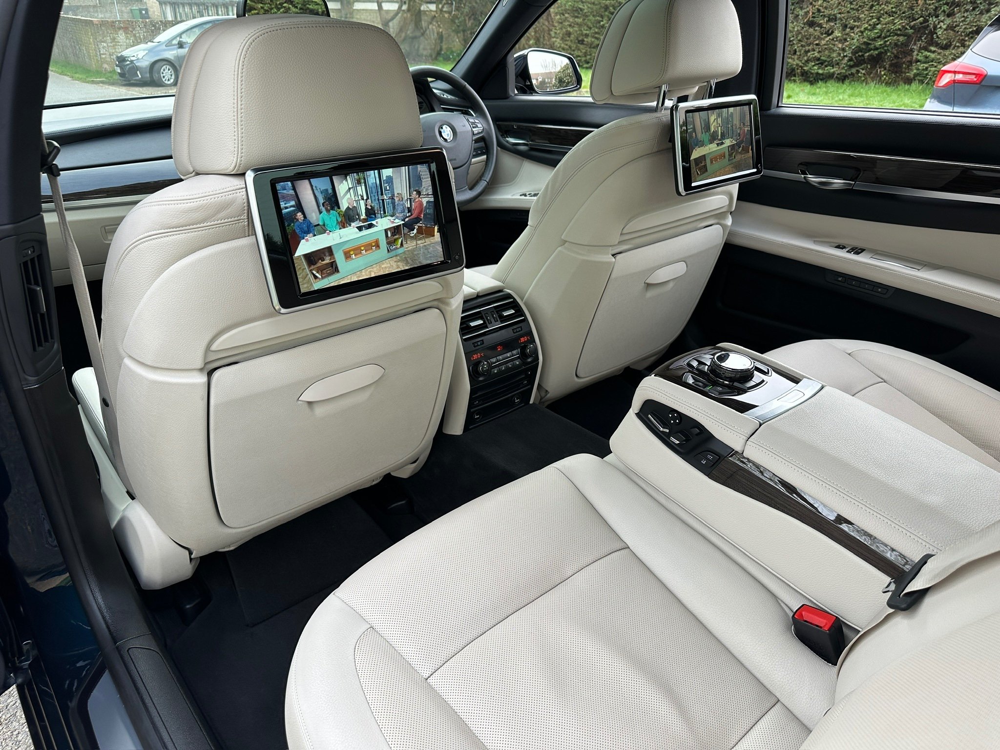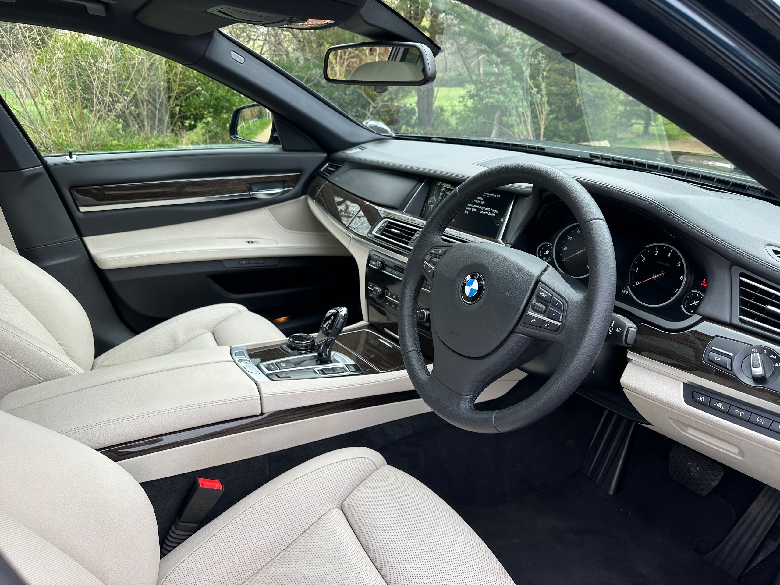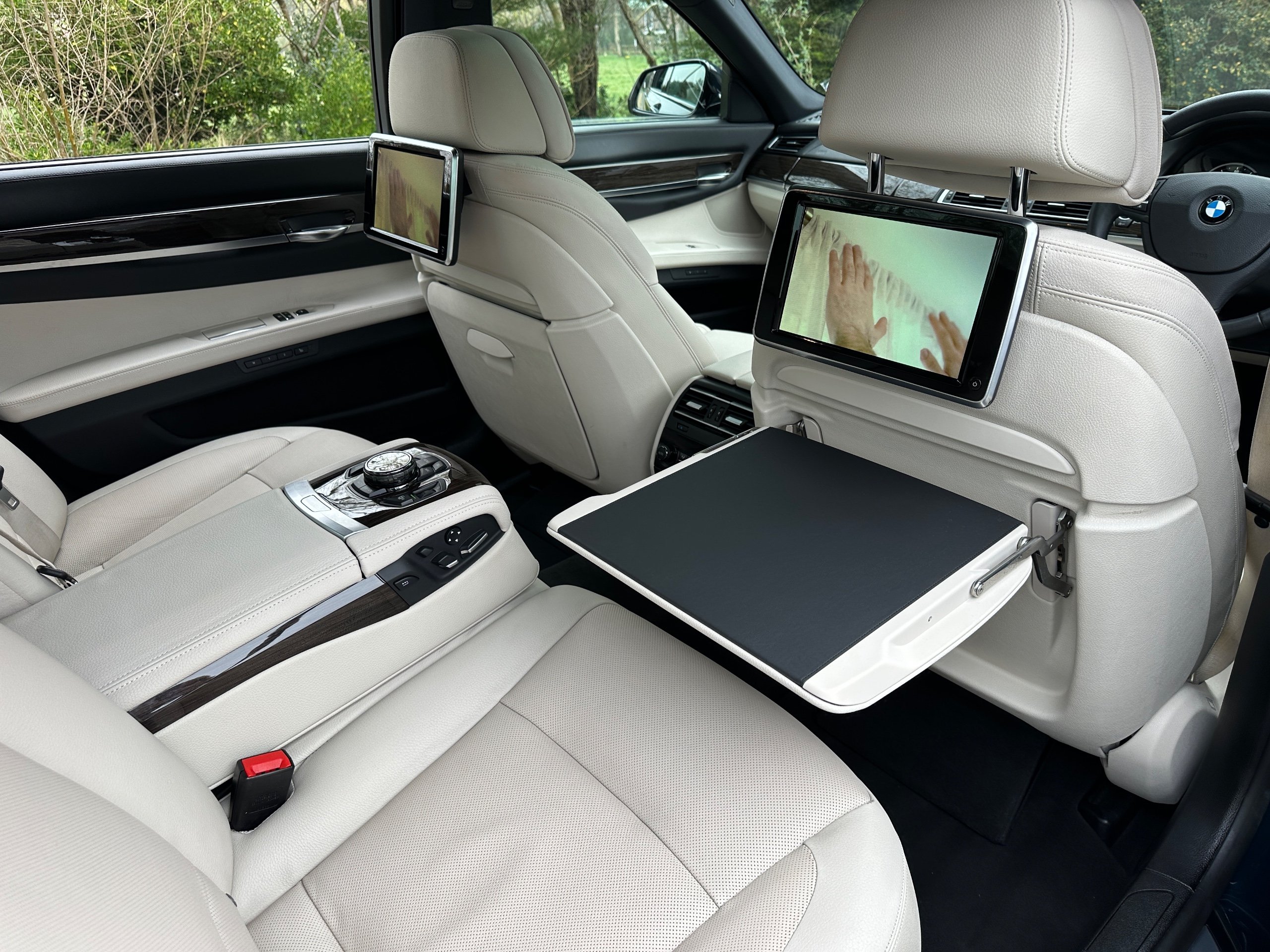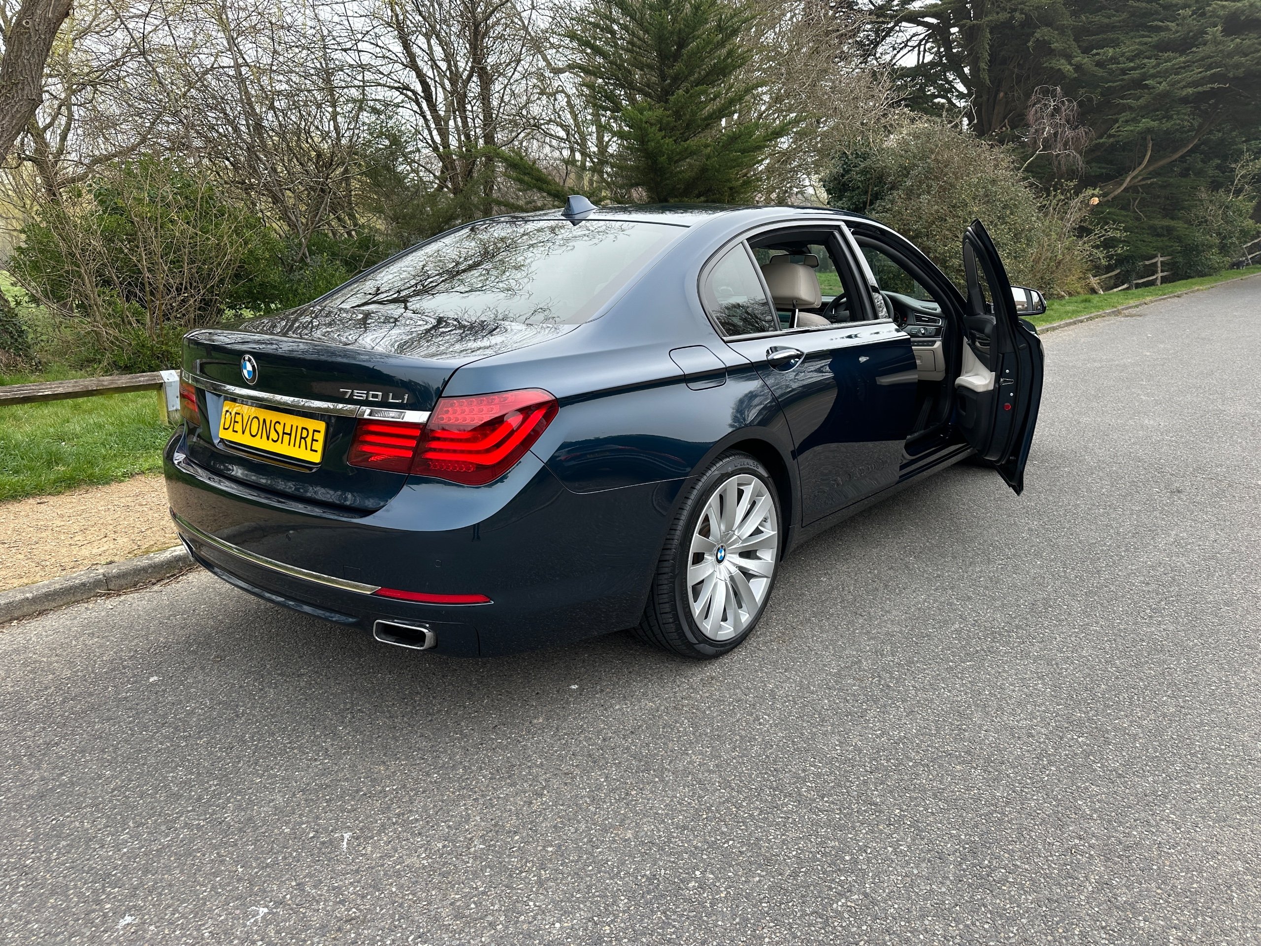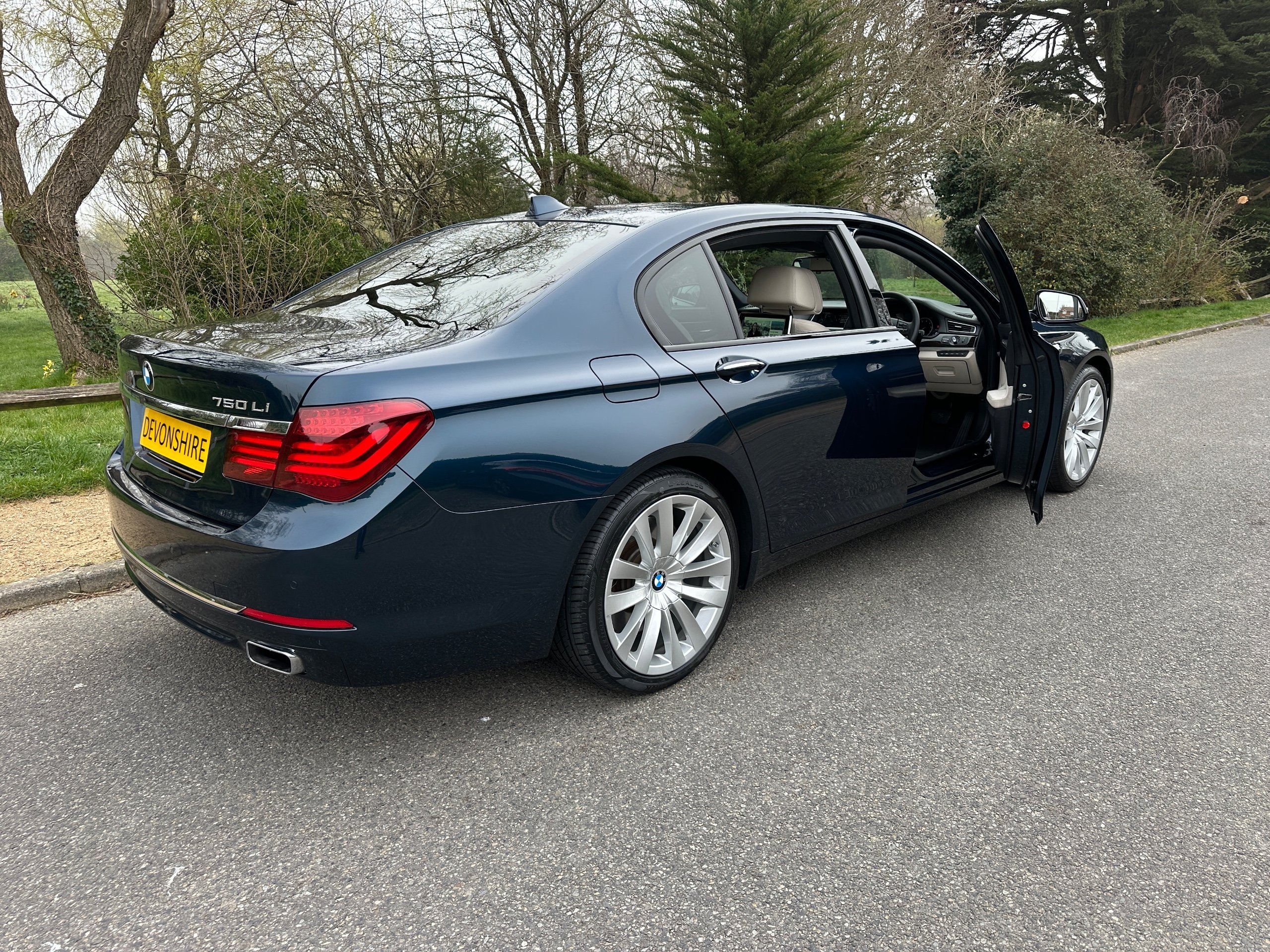 BMW 750Li SE 4.4 V8 Twin Turbo Petrol Automatic. ONLY 12500 MILES FROM NEW. 2014 UK Supplied From New. Finished in Metallic Midnight Blue with Full White Ivory Dakota Leather Electric Heated Air/Con Seats. This Incredible Car was Sold New by BMW Park Lane to its One Owner in 2014. Factory Options Cost over £25k: Executive Plus Pack, Rear Seat Entertainment with 10"Screens, BMW Professional with Rear iDrive Control,Rear Electric Comfort Heated/AirCon Seats, Adaptive LED Headlights, Night Vision with Dynamic Light Spot, Driving Assistant Plus, Comfort Seats Front Heated/Air Con, Rear Picnic Tables, Head-up Display, Rear Camera, 20" Double Spoke alloys,Instrument Panel in Leather, Comfort Access System,Soft Close Doors, Massage Function in Rear Seat Backrests, Power Bootlid ,Exterior Trim High Gloss Shadowline. Full BMW Main Dealer Service History including Service Invoices and 2 Keys and Full Bookpack. UK Supplied From New. ULEZ Compliant.