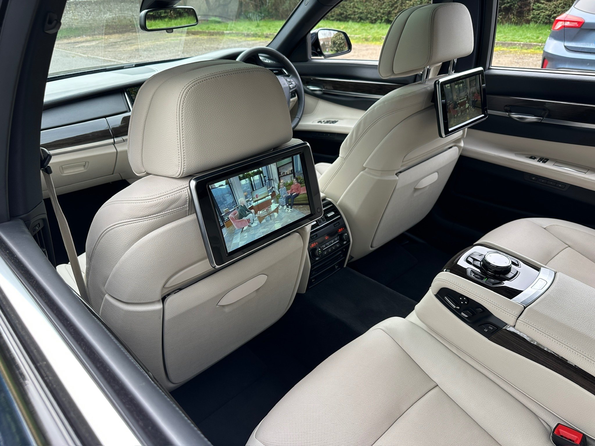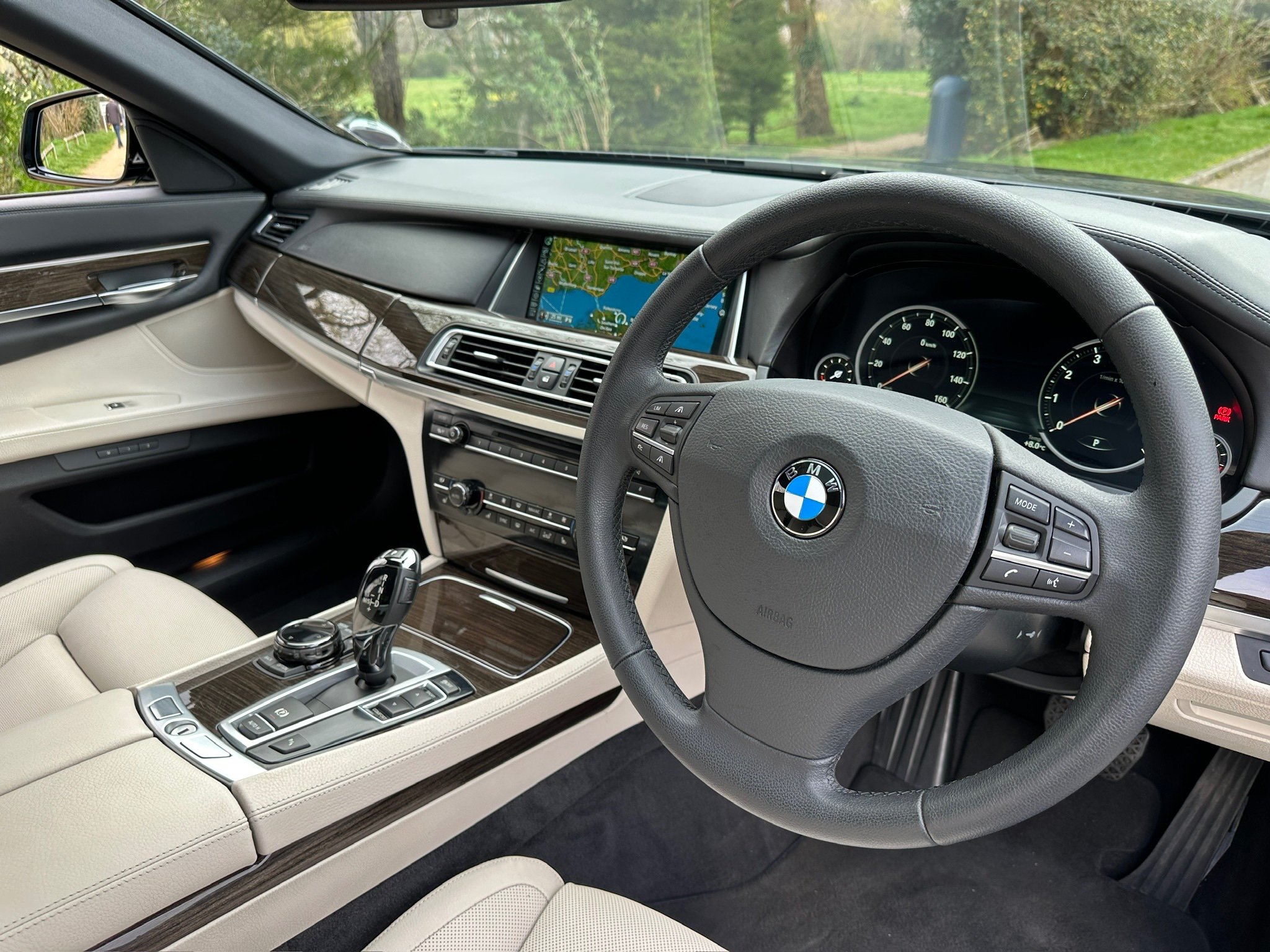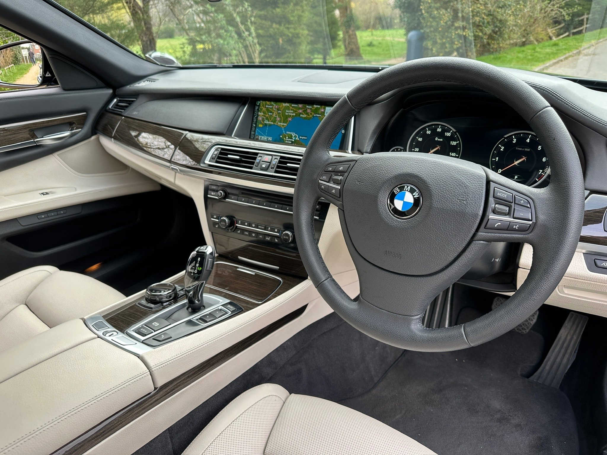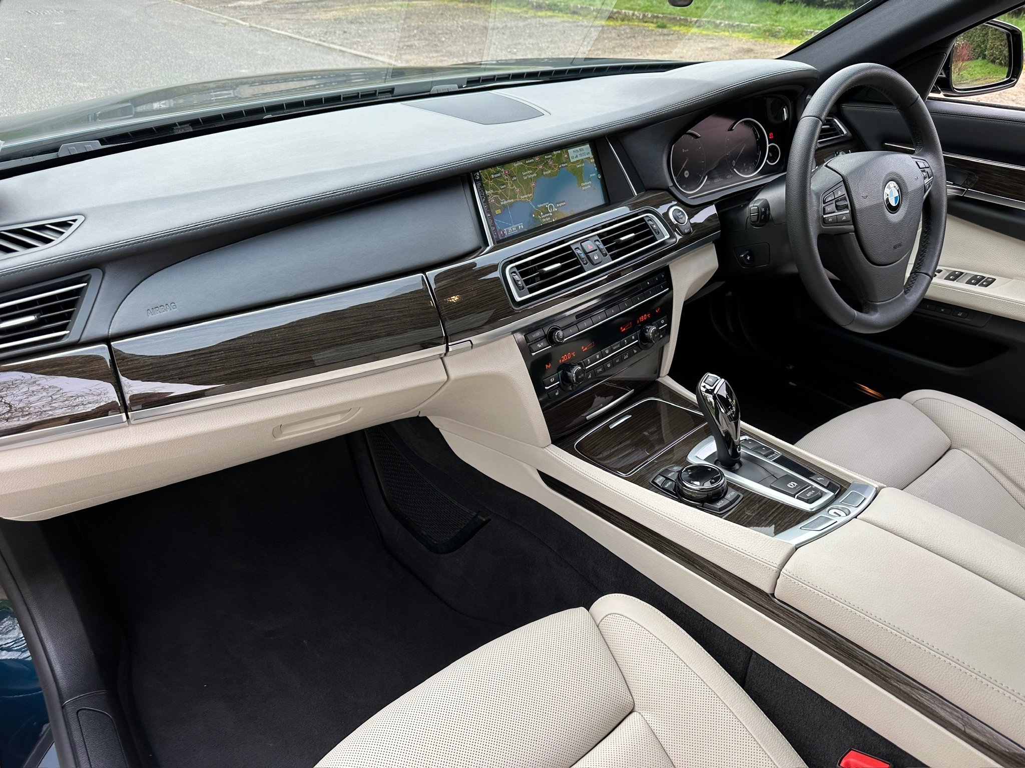 BMW 750Li SE 4.4 V8 Twin Turbo Petrol Automatic. ONLY 12500 MILES FROM NEW. 2014 UK Supplied From New. Finished in Metallic Midnight Blue with Full White Ivory Dakota Leather Electric Heated Air/Con Seats. This Incredible Car was Sold New by BMW Park Lane to its One Owner in 2014. Factory Options Cost over £25k: Executive Plus Pack, Rear Seat Entertainment with 10"Screens, BMW Professional with Rear iDrive Control,Rear Electric Comfort Heated/AirCon Seats, Adaptive LED Headlights, Night Vision with Dynamic Light Spot, Driving Assistant Plus, Comfort Seats Front Heated/Air Con, Rear Picnic Tables, Head-up Display, Rear Camera, 20" Double Spoke alloys,Instrument Panel in Leather, Comfort Access System,Soft Close Doors, Massage Function in Rear Seat Backrests, Power Bootlid ,Exterior Trim High Gloss Shadowline. Full BMW Main Dealer Service History including Service Invoices and 2 Keys and Full Bookpack. UK Supplied From New. ULEZ Compliant.