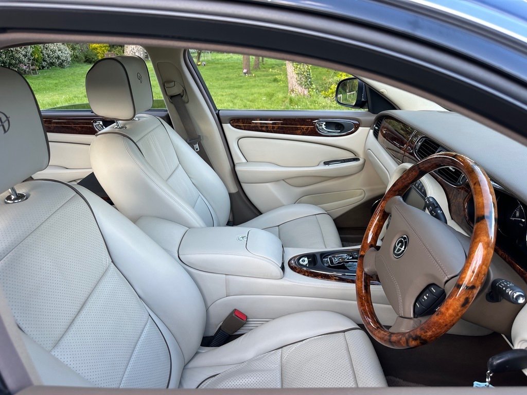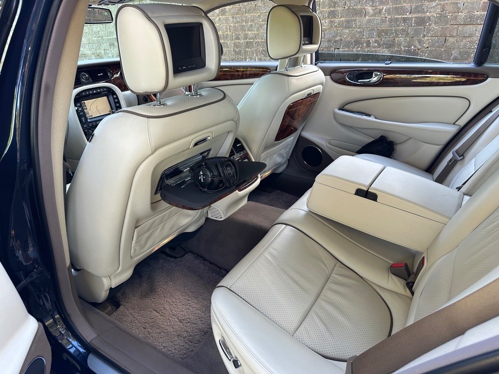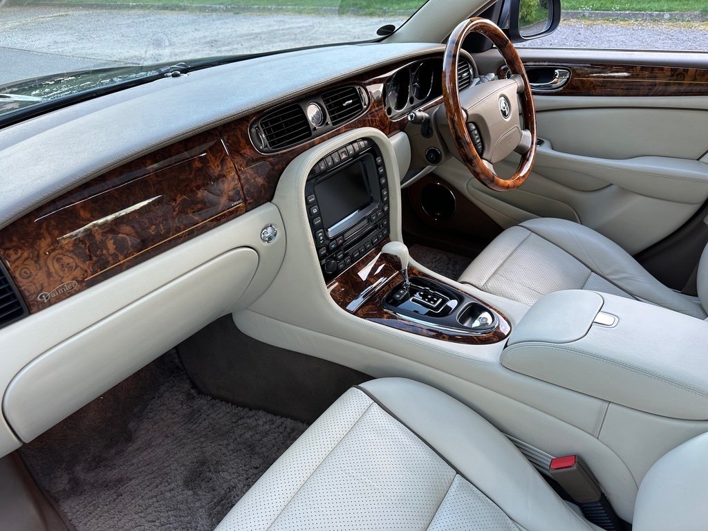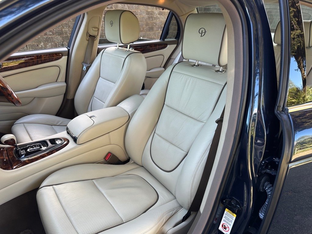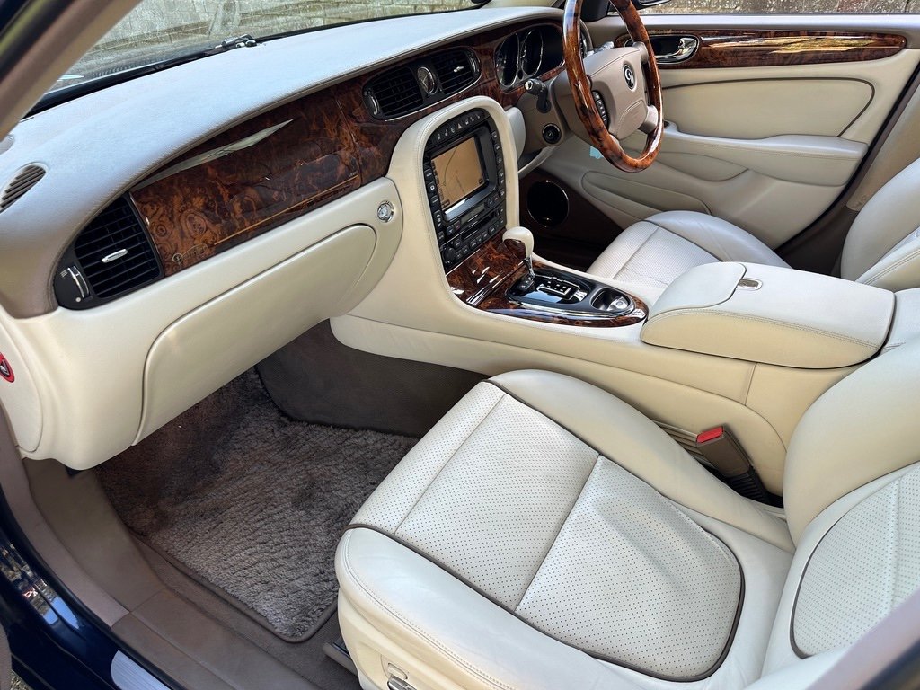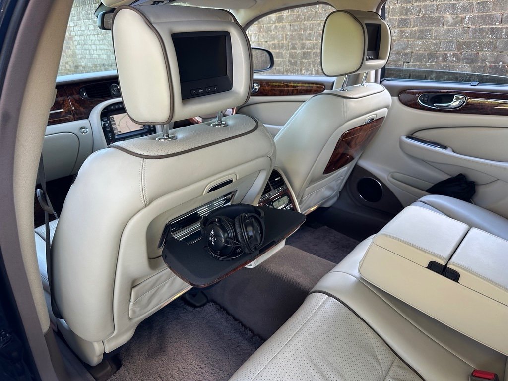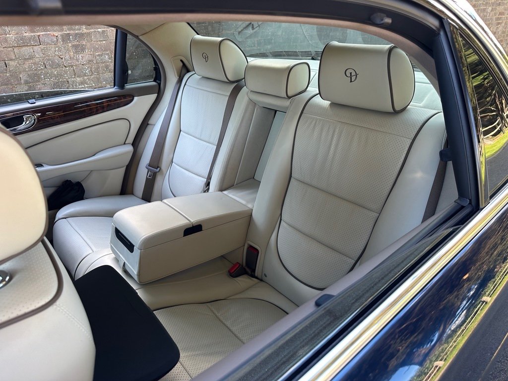 Daimler 4.2 Super V8 LWB 2007 Final Edition X358 Petrol. Only 53000 Miles From New. A UK Supplied Car From New. Finished in the Ultimate Colour Combination of Metallic Indigo Pearl Blue with Full Ivory Leather with D Monogrammed Headrests. This Extremely Rare Car is One of the Final Edition Daimlers to be Sold New by Stratstone Jaguar on 17th September 2007. Being a Daimler it was Ordered New the an Extensive Options List: Electric Glass Tilt/Slide Sunroof, Chrome Wing Blades and Door Mirrors,Xenon Headlights, Unique Daimler Alloy Wheels, Double Glazed Acoustic Glass, Air conditioned /Heated Front Seats, Speed Limiter with Radar Cruise Control, Alpine Premium Audio with Sat/Nav, Rear Heated Electric Recline Seats with Memory, Rear Entertainment Console and TV Screens, Walnut Picnic Tables, Door Blinds and Electric Rear Window Blind, LambsWool Over Rugs. Full Jaguar/Specialist Service History with Service Invoices, Full MOT History, 2 Keys and Full Book Pack. Must be One of the Rarest Low Mileage Final Edition Daimlers Available that was Sold New in the UK. Find another One! For More Detailed Information Please Call or email.